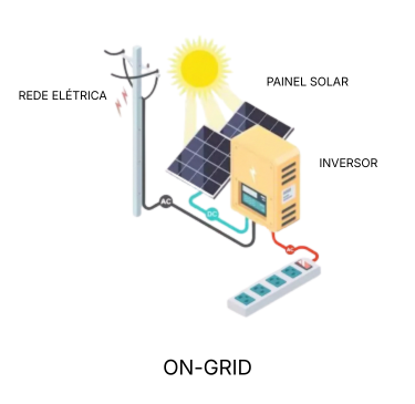 No sistema On-Grid a usina solar gera energia fotovoltaica para consumo imediato e injeta o excedente na rede da concessionária local para posterior utilização.